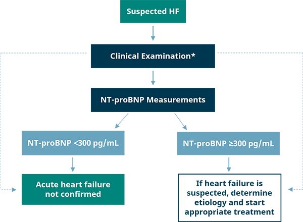 As diretrizes para o diagnóstico de insuficiência cardíaca aguda recomendam que todos os pacientes com suspeita de insuficiência cardíaca realizem exames de diagnóstico utilizando péptidos natriuréticos, como NT-proBNP e, se disponível, realize os testes como um ensaio POC [4].